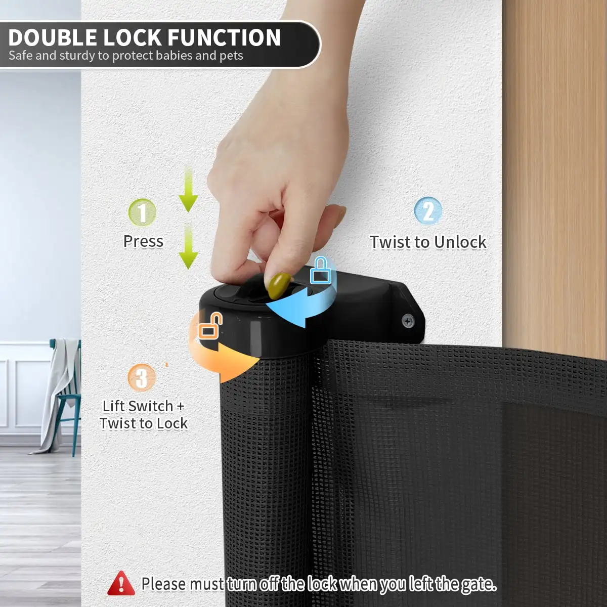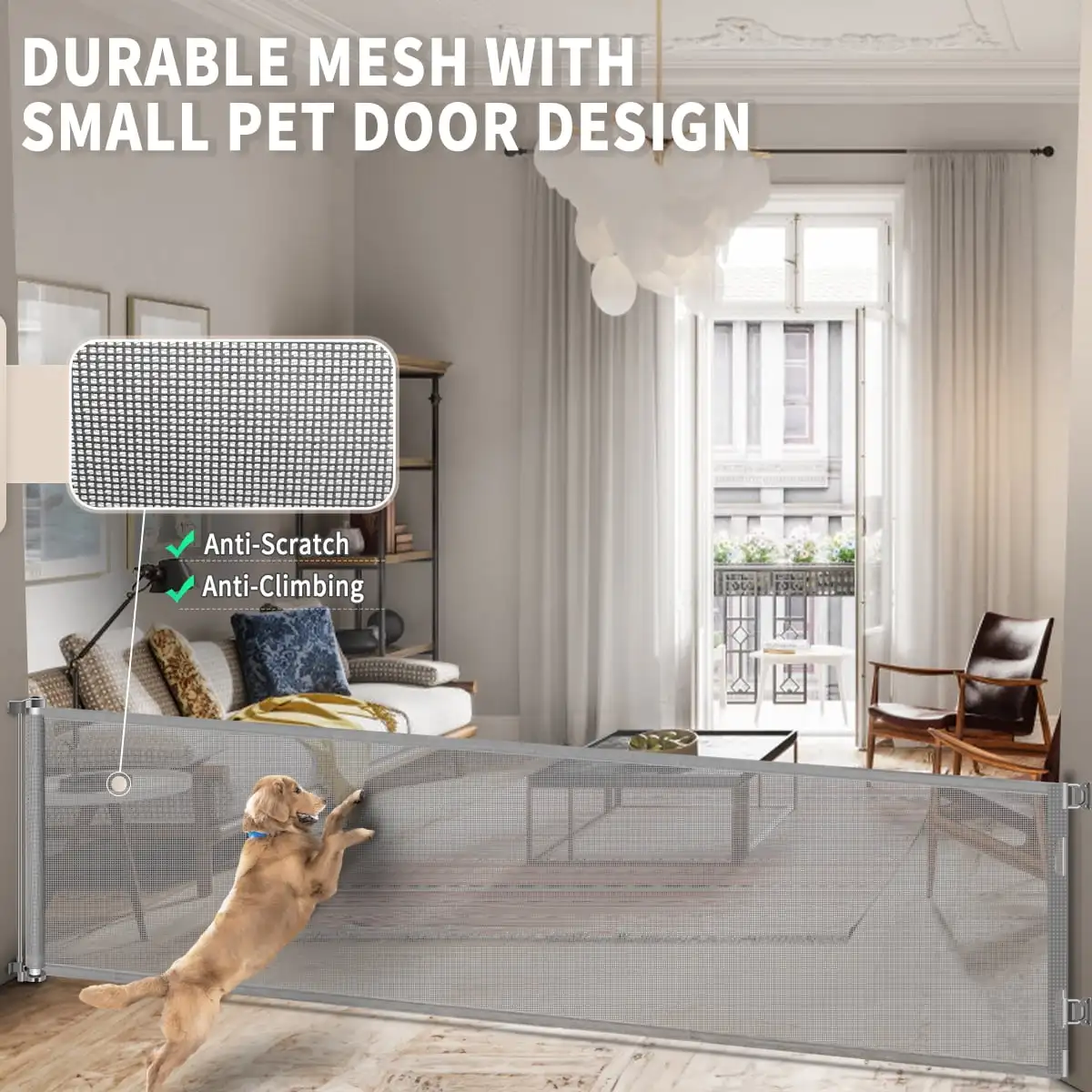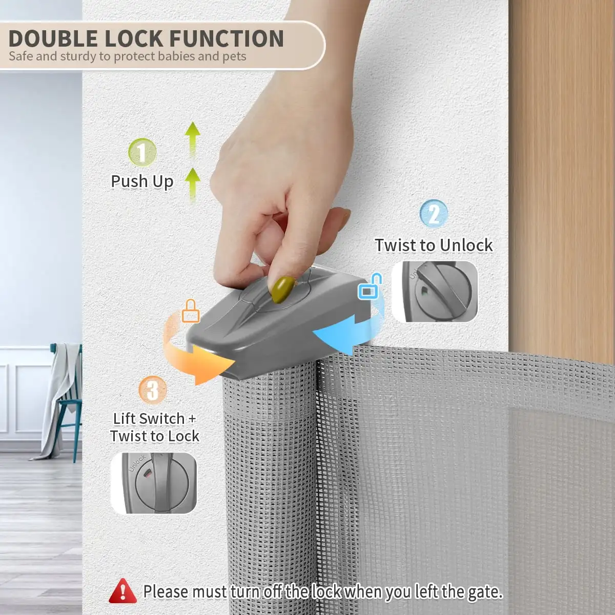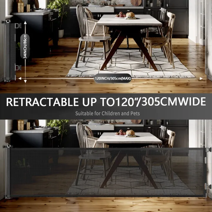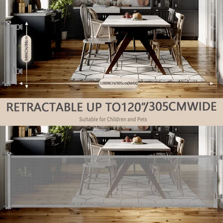 120inx34in Retractable Baby Gate Tall Mesh Baby Gate Extends up to Wide Retractable Gate for Kids or Pets Retractable Dog Gates