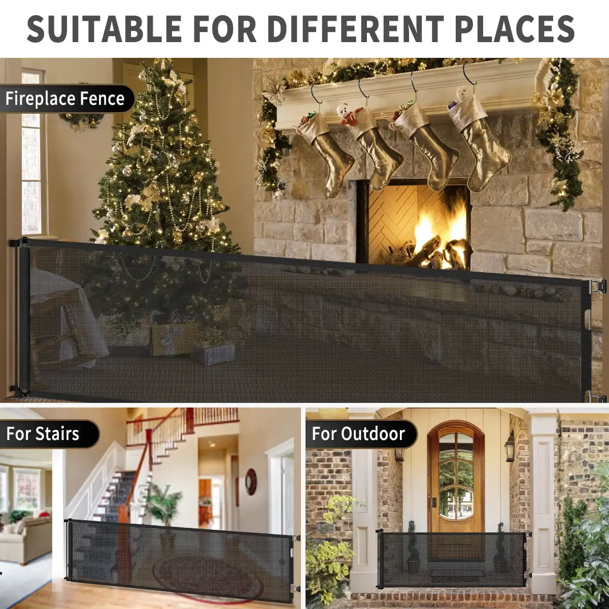1. Retractable Baby Gate: The baby gate retracts out of the way when it's not in use, so it doesn't take. It can be pulled out and rolled up easily and doesn't take up any unnecessary space. Your dog gate can be adjusted to fit your openings.