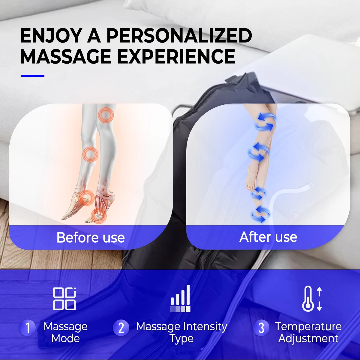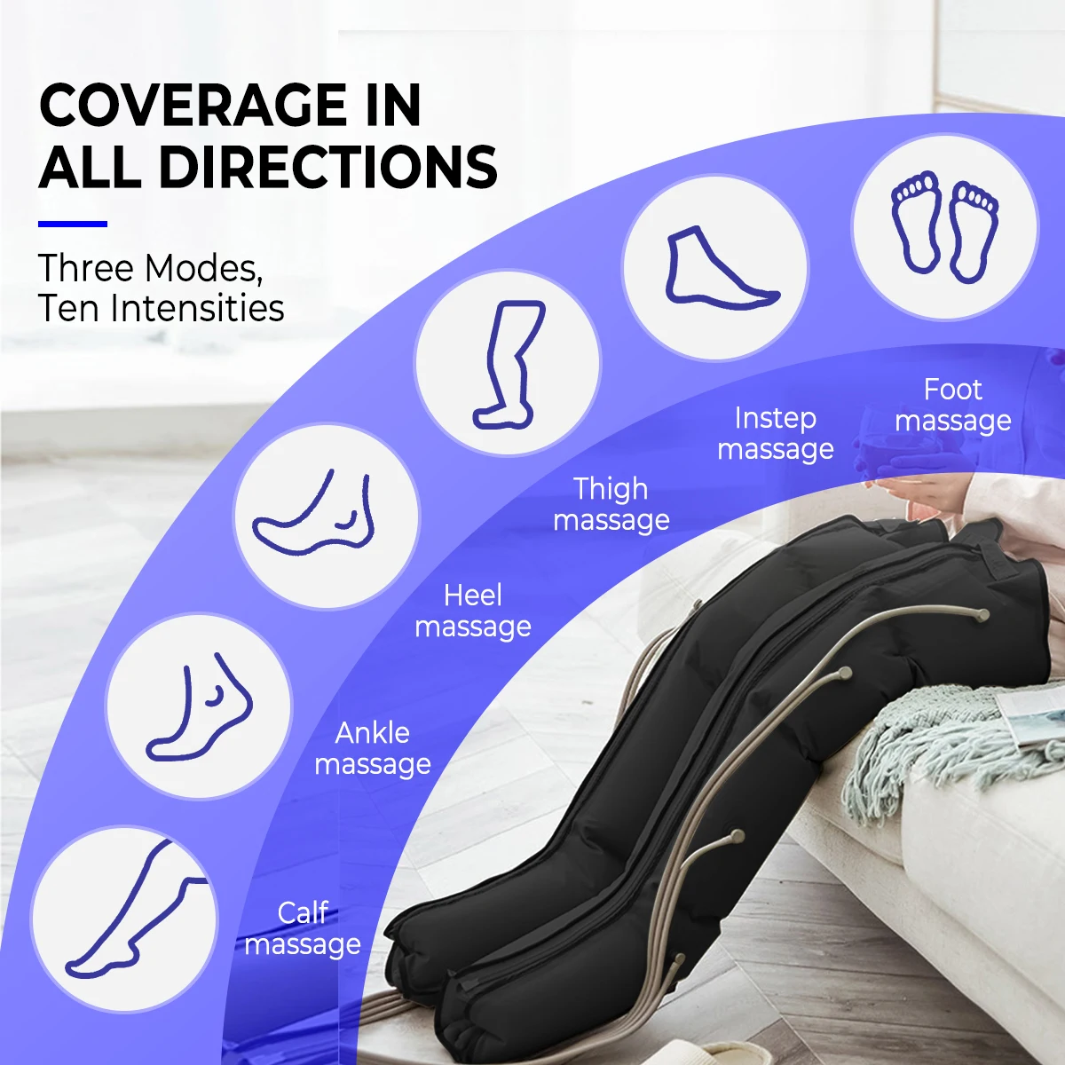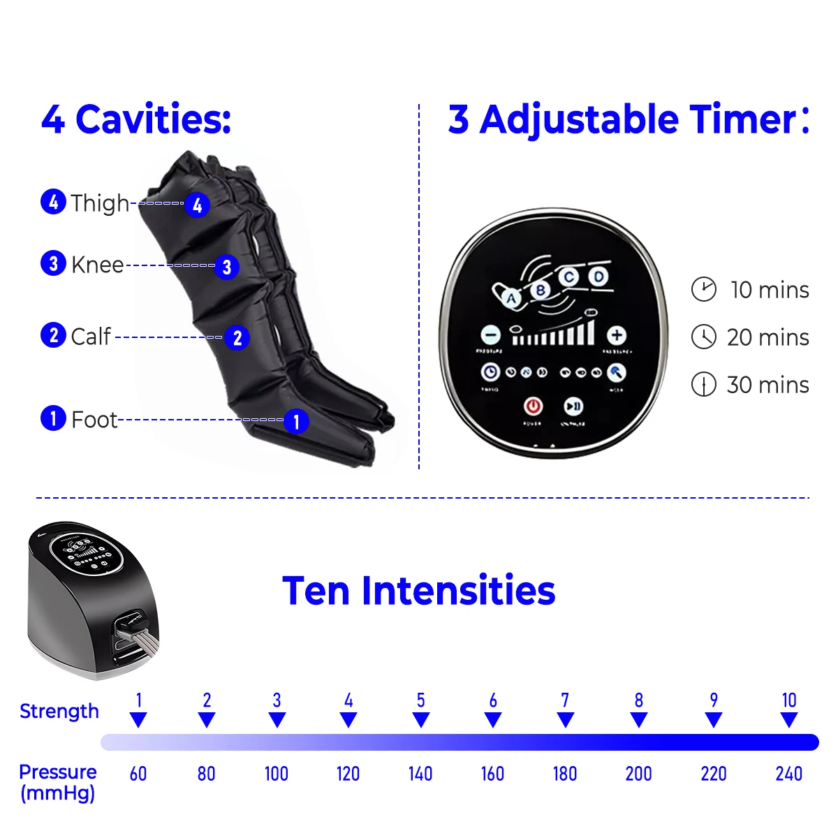 3 Massage Methods & 10 Intensities: The leg massager has 3 massage modes and 10 intensity levels, allowing you to choose the appropriate treatment mode according to each person's leg condition.