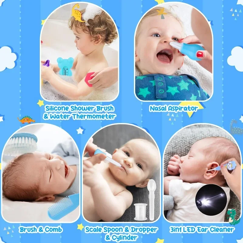 👶【Thoughtful Design for Baby】The rounded design of the end of the comb will not harm the scalp. The electric nail trimmer has a low sound and can be trimmed without disturbing the baby's sleep. The flexible tip of the nasal aspirator can safely clean the secretions in the baby's delicate nose. The Liquid Dropper and Measuring Spoon are equipped with scales for you to accurately measure the dosage. All from the baby's safety, provide the best daily care for your baby in all directions.
