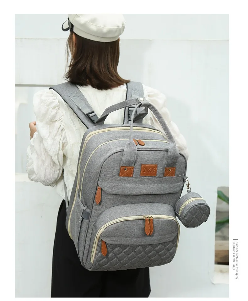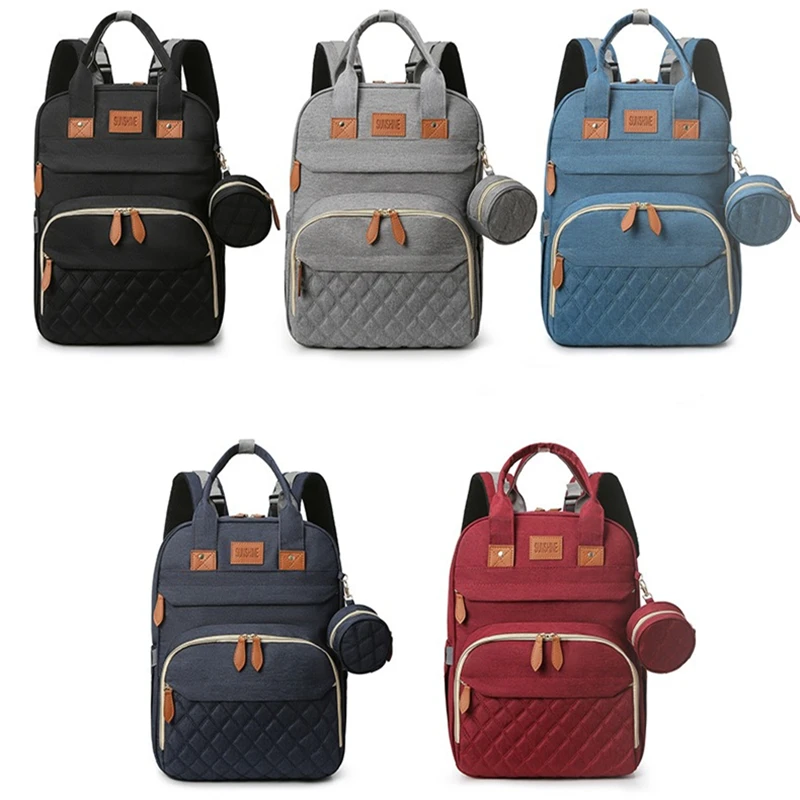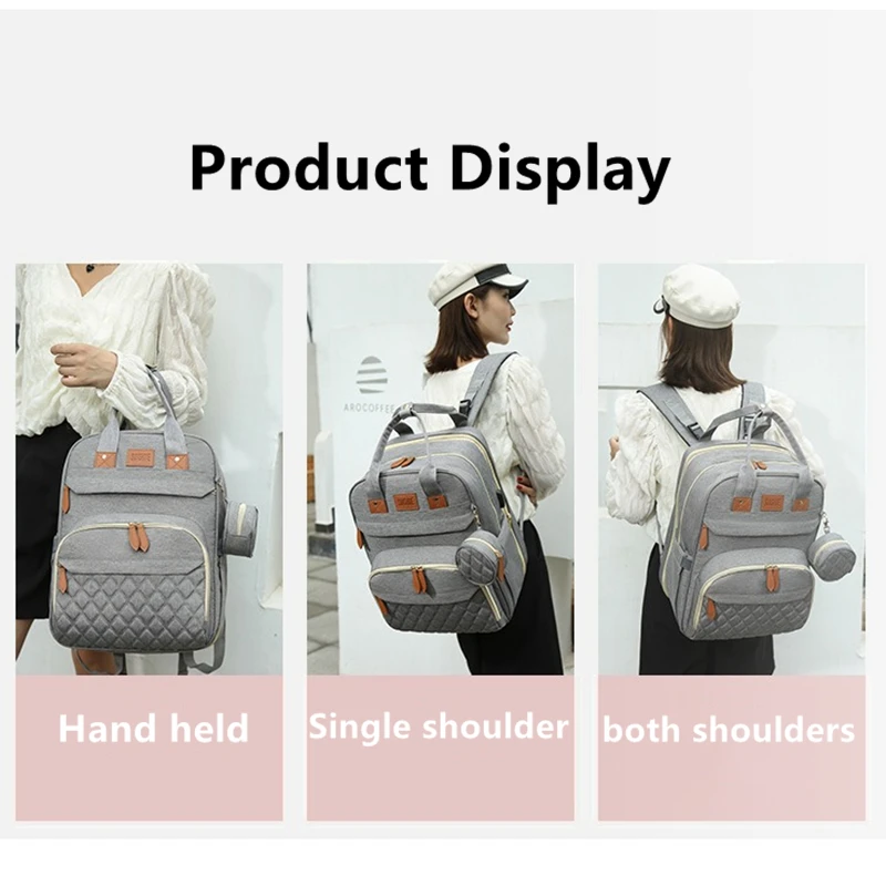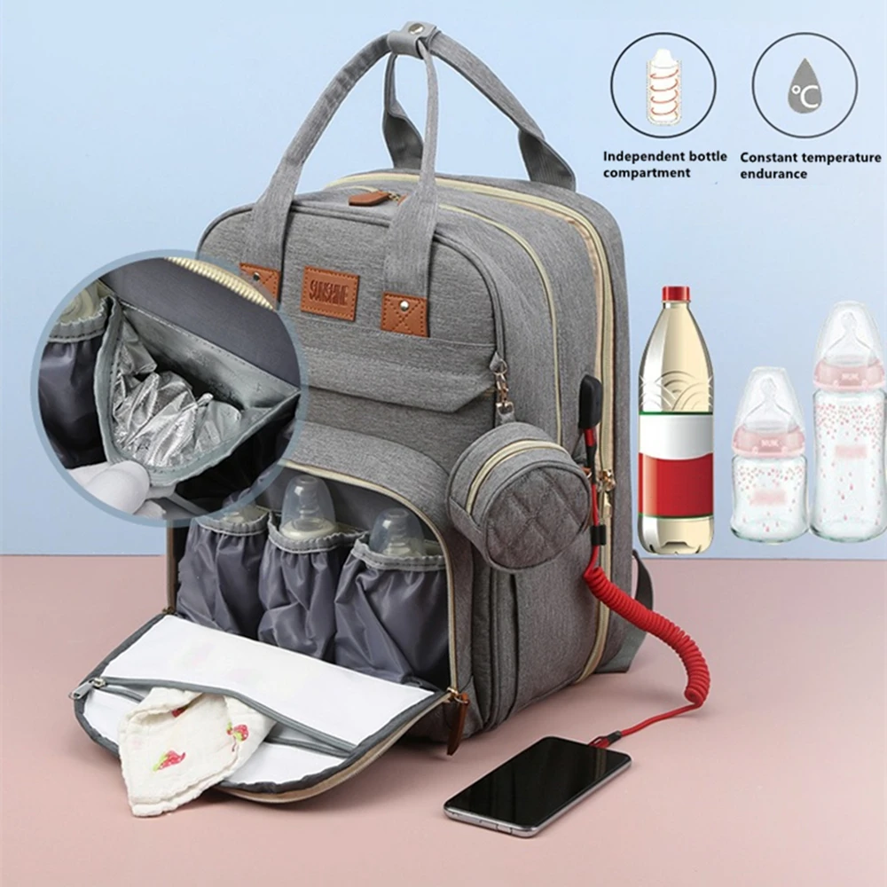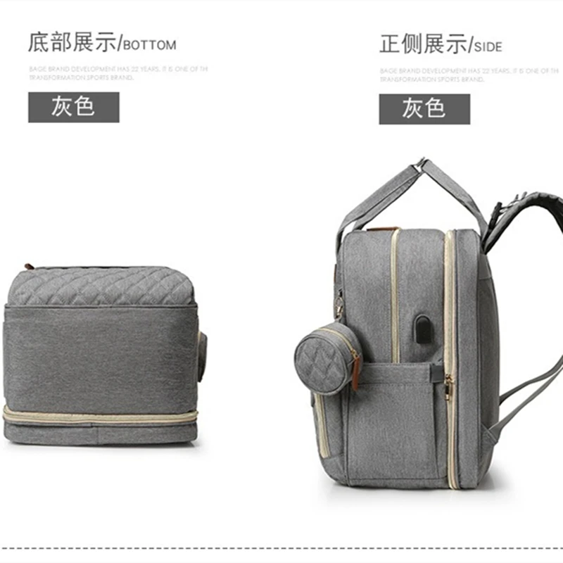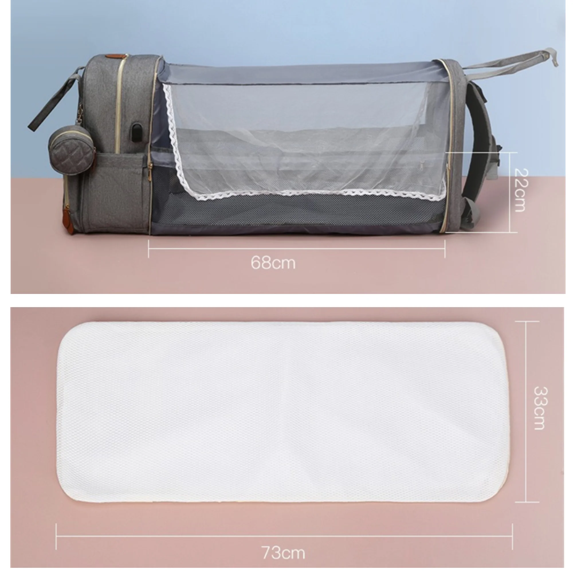 / Folding Mommy Bag with USB Port Mosquito Net Portable Multi Function Pee Pad Mother Baby Bag Backpack Bed Nappi Bag