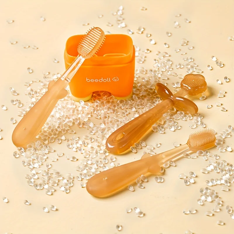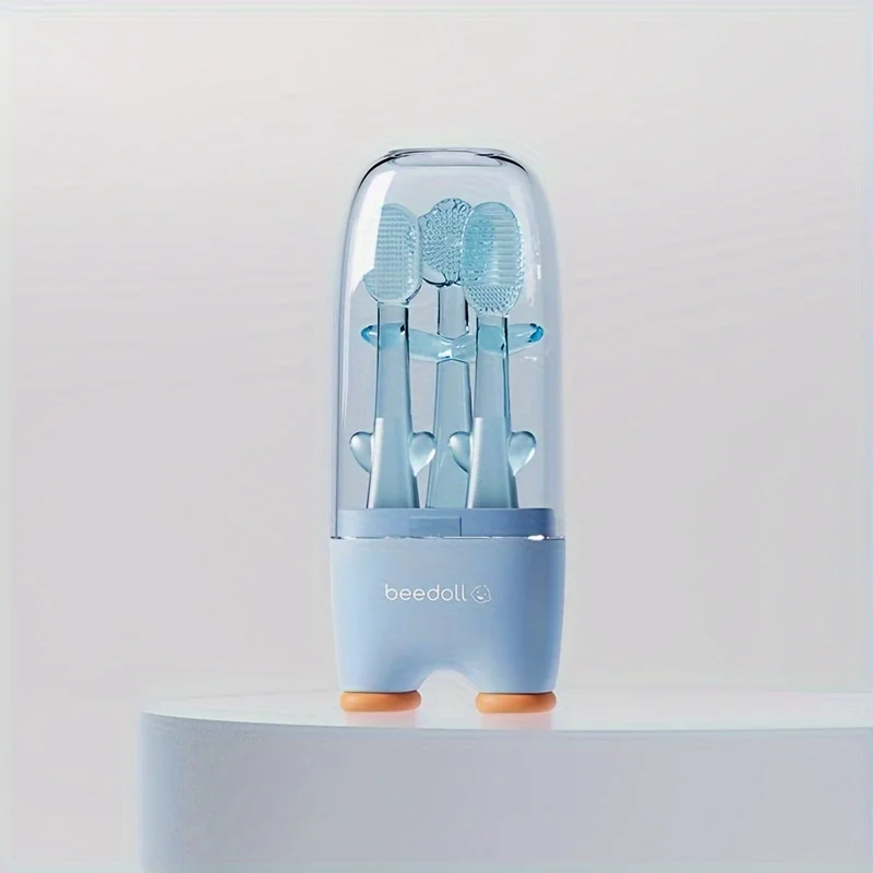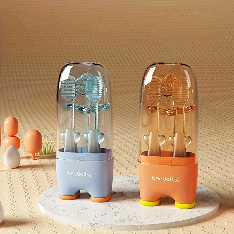 Infants and Toddlers Milk Teeth Toothbrush Set for Home and Travel, Soft Silicone Baby Oral Tongue Cleaning Toothbrush