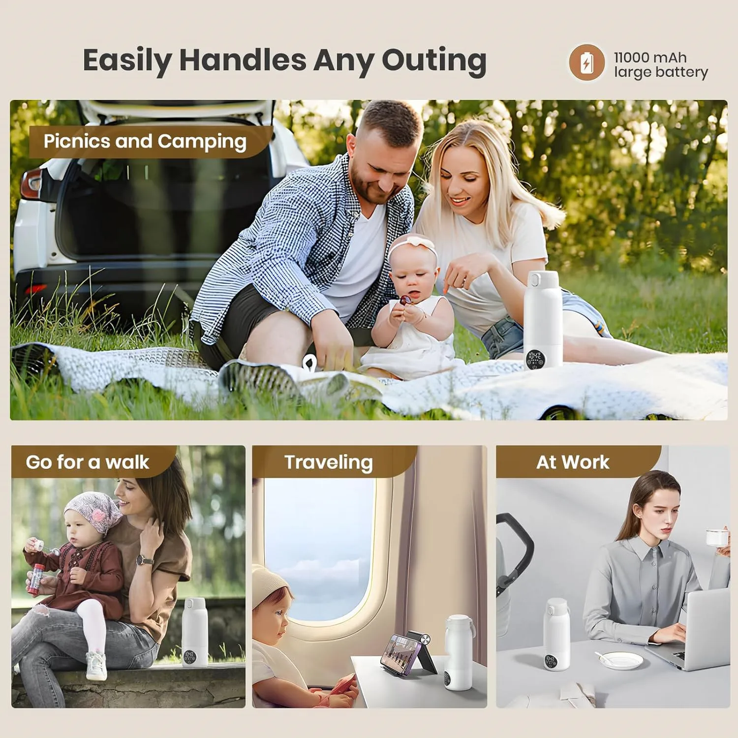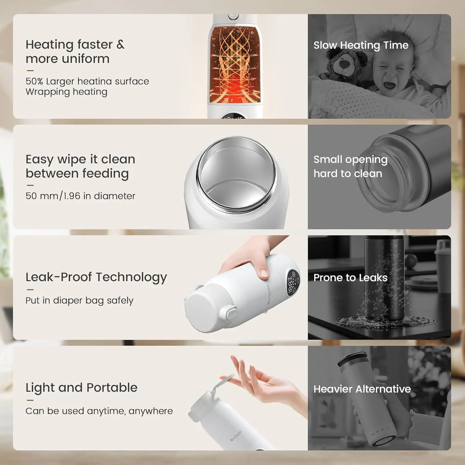 Equipped with a rechargeable battery, this warmer provides convenient, cord-free use, making it ideal for busy parents.