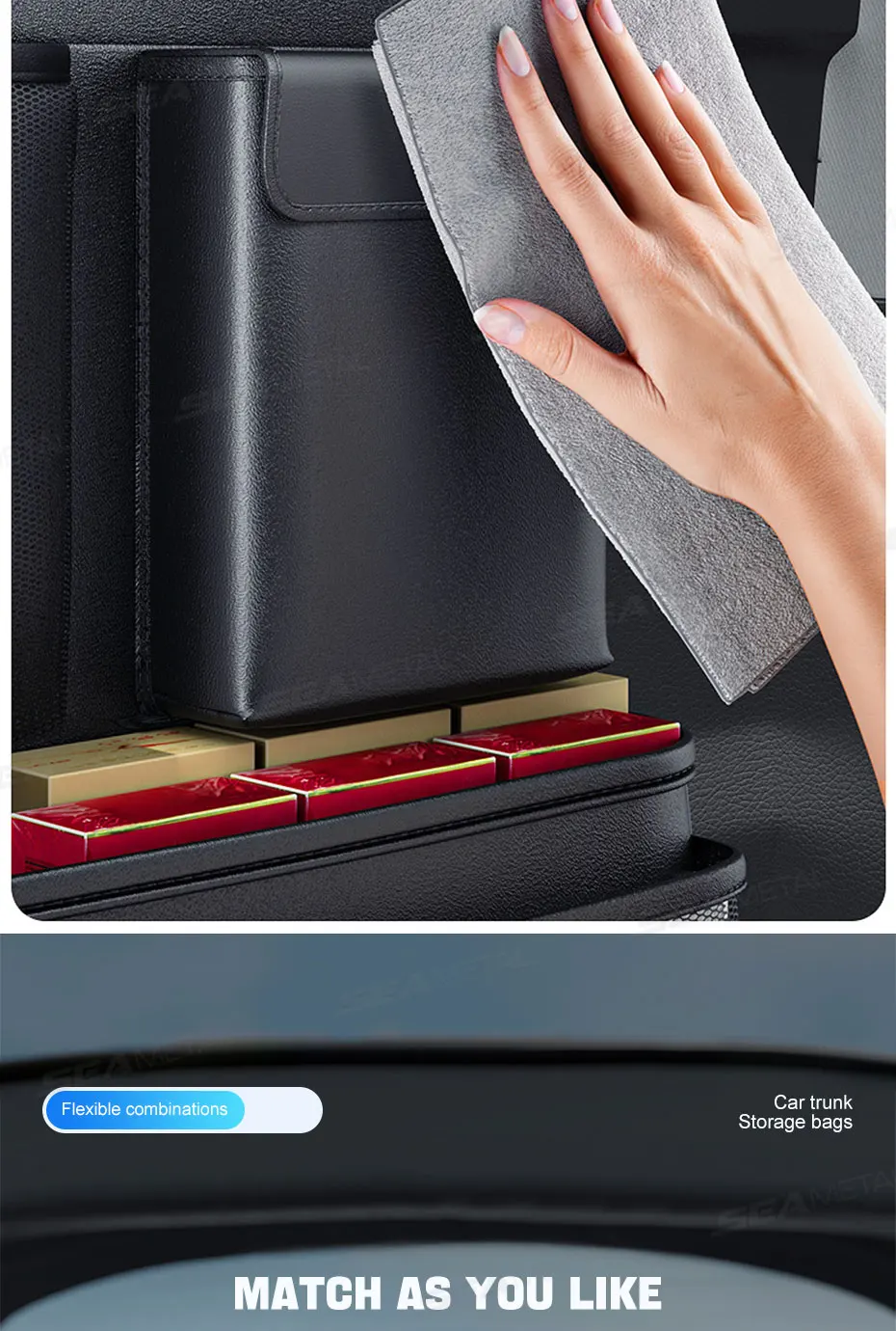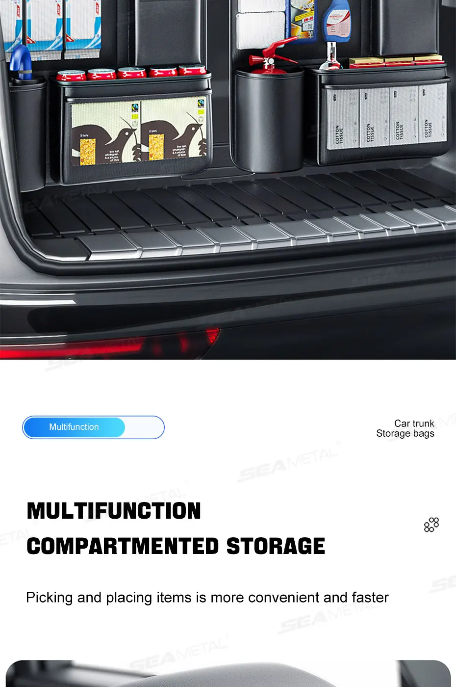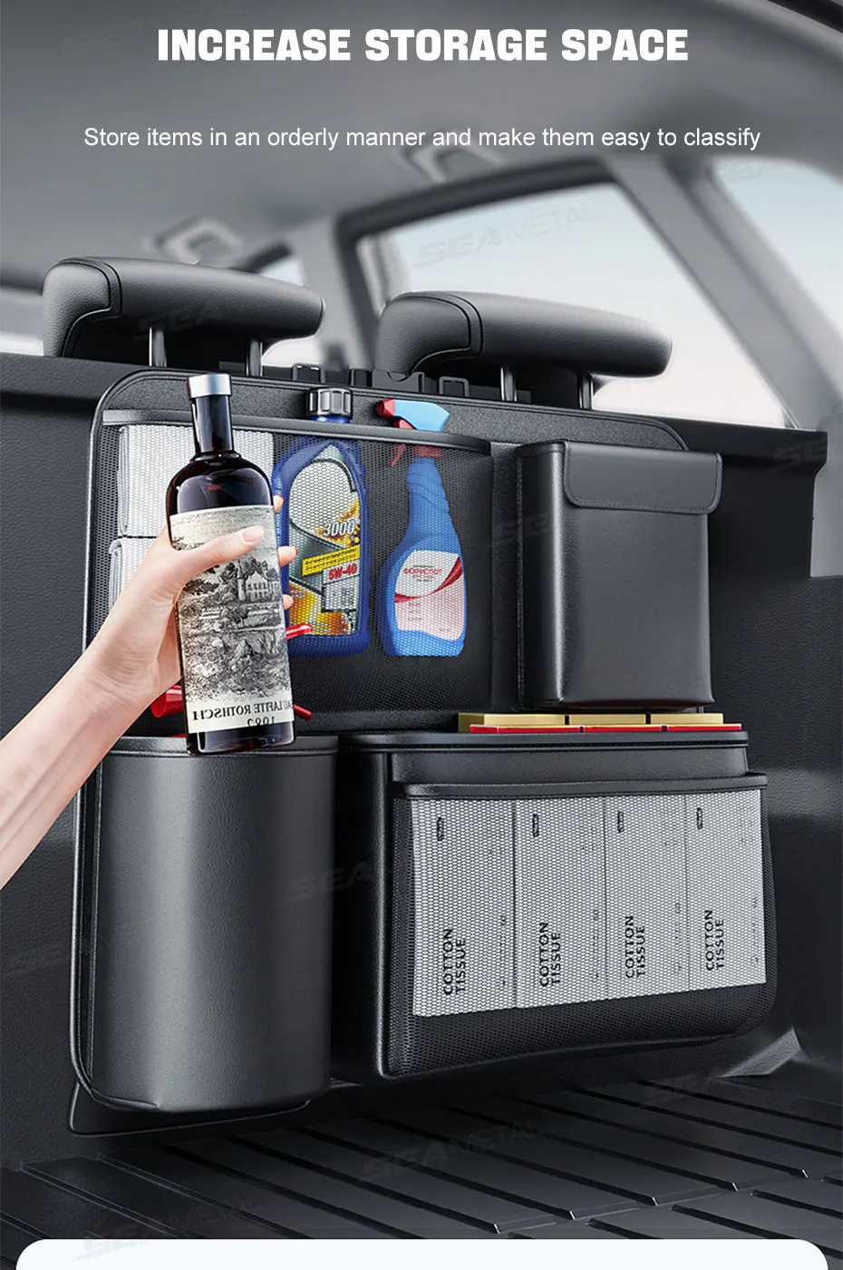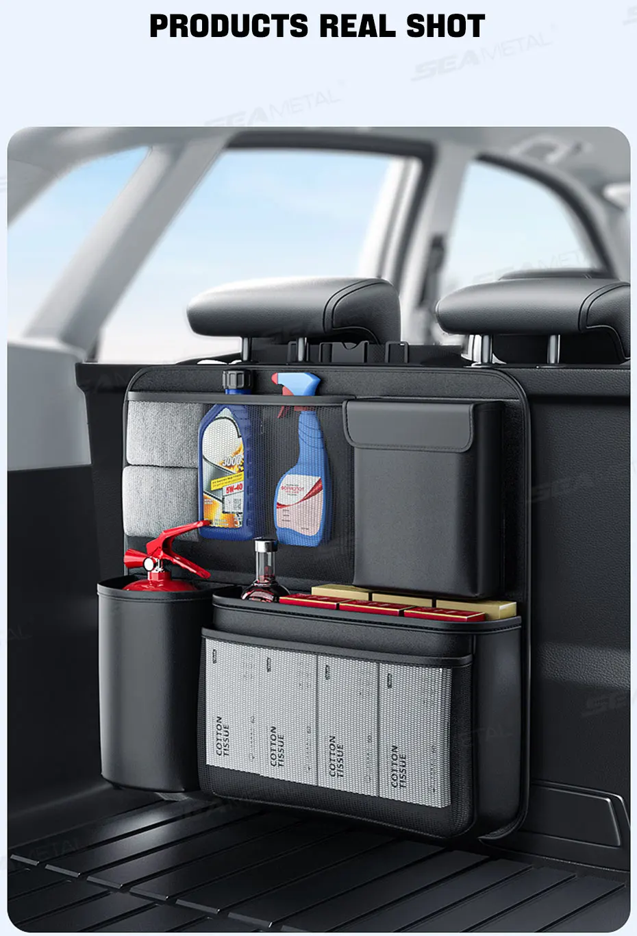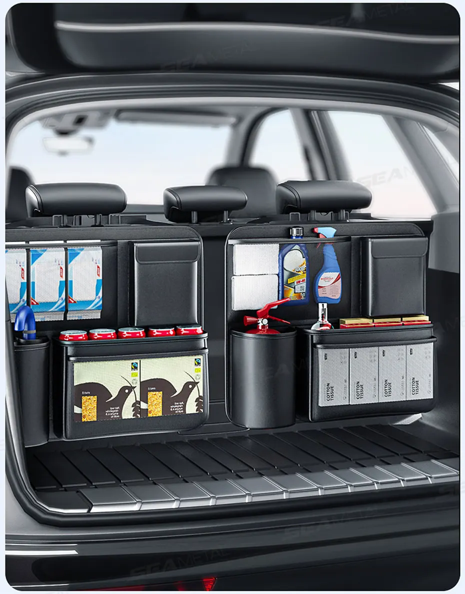SEAMETAL Trunk Storage Bag for Car Multi-Pocket Seat Back Organizer Hook-and-Loop Fastener Storage Pouch Universal for SUV MPV