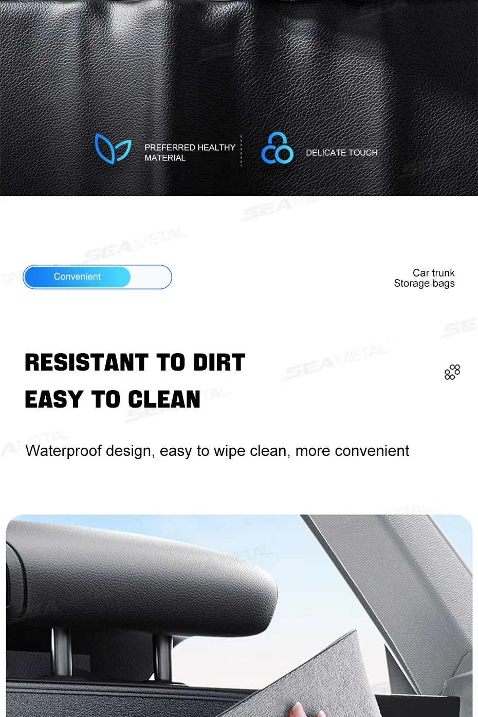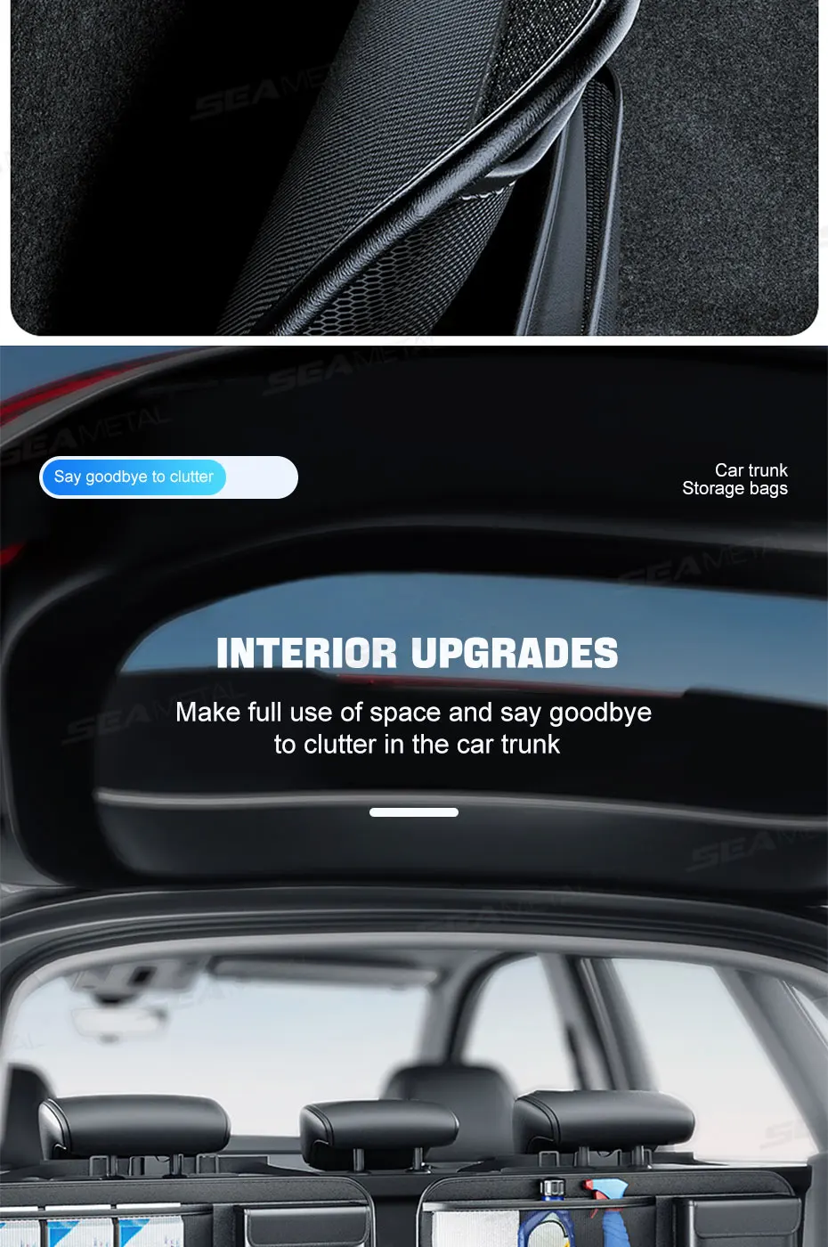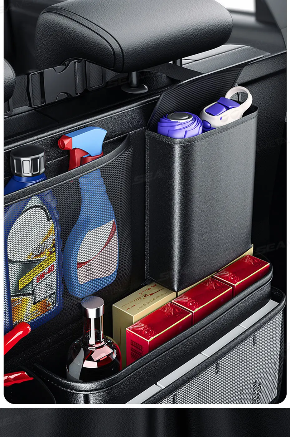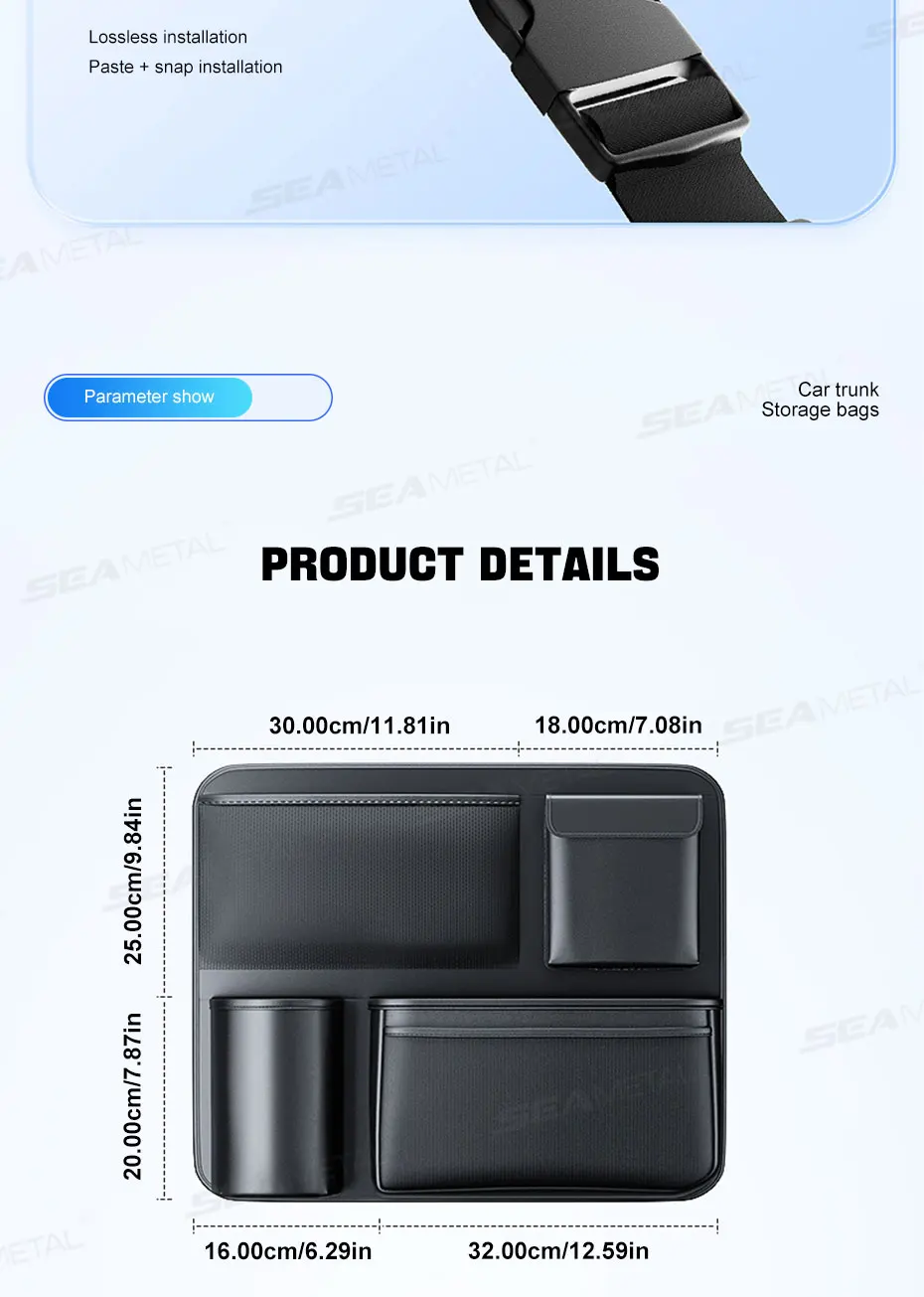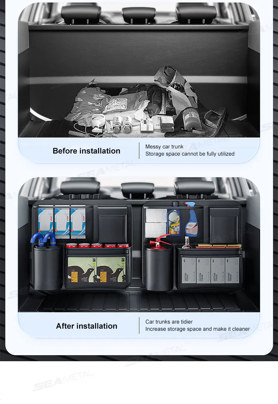 SEAMETAL Trunk Storage Bag for Car Multi-Pocket Seat Back Organizer Hook-and-Loop Fastener Storage Pouch Universal for SUV MPV