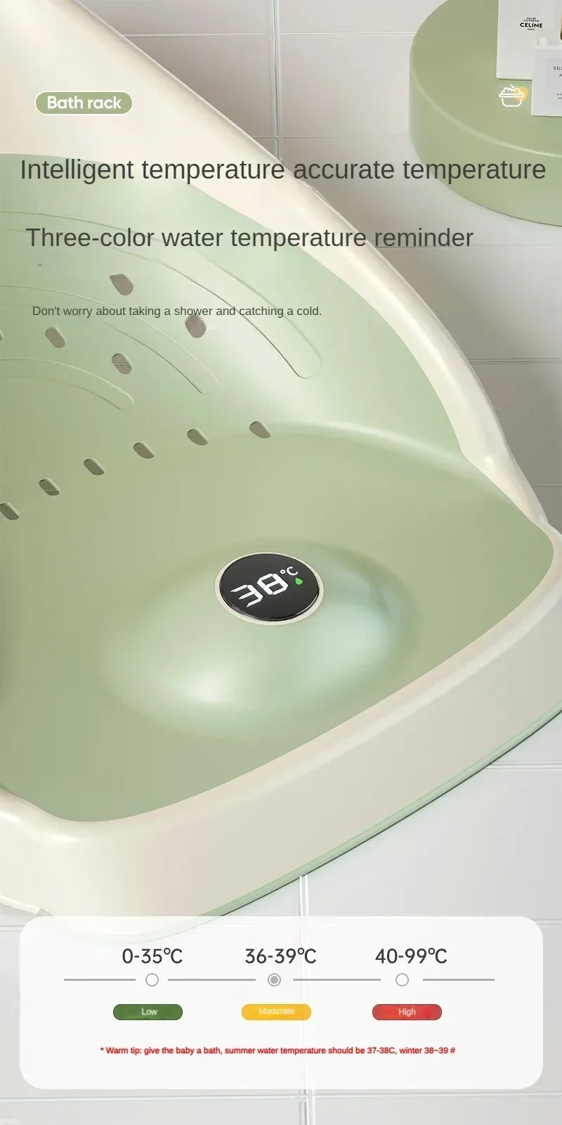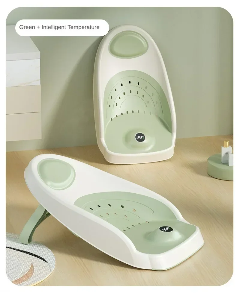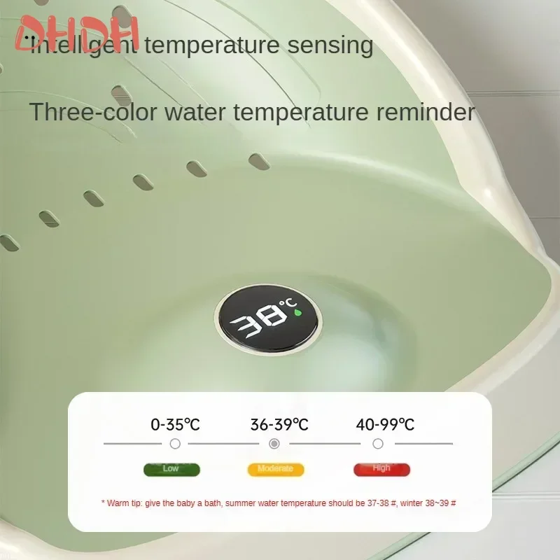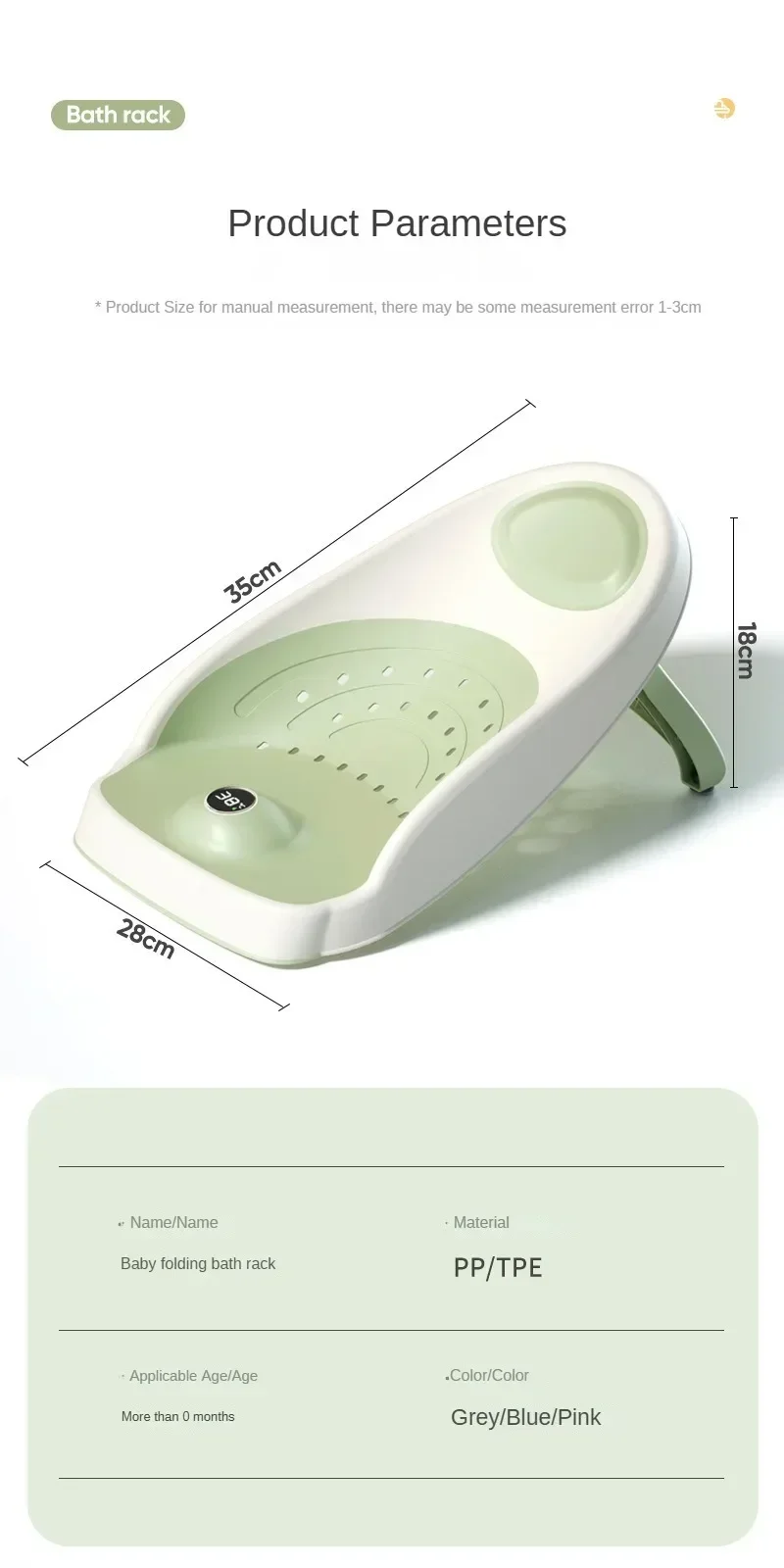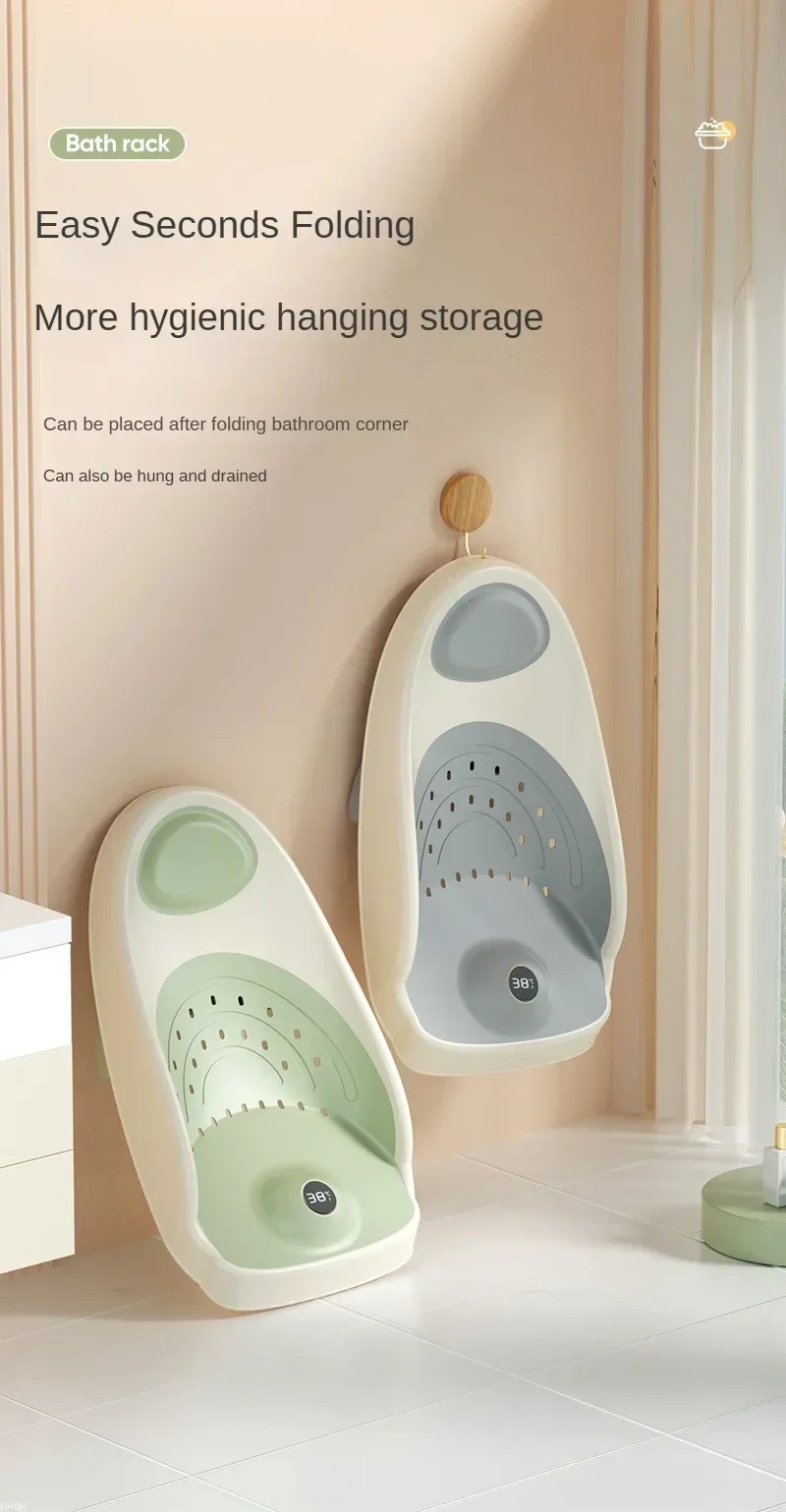 Temperature Display Baby Bath Tub – Non-Slip Foldable Infant Bathtub Real-Time Water Temp Sensor, Portable & Safe for Newborns