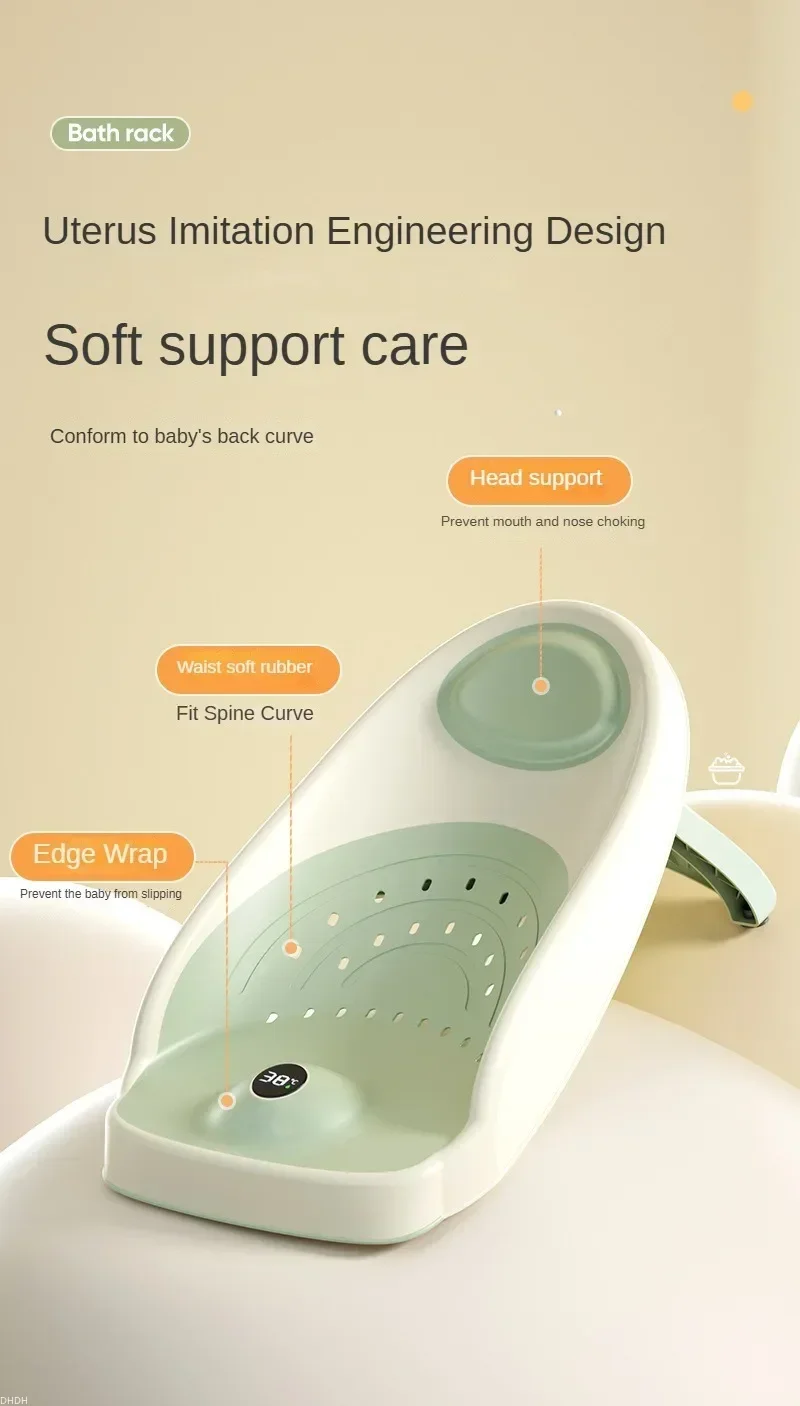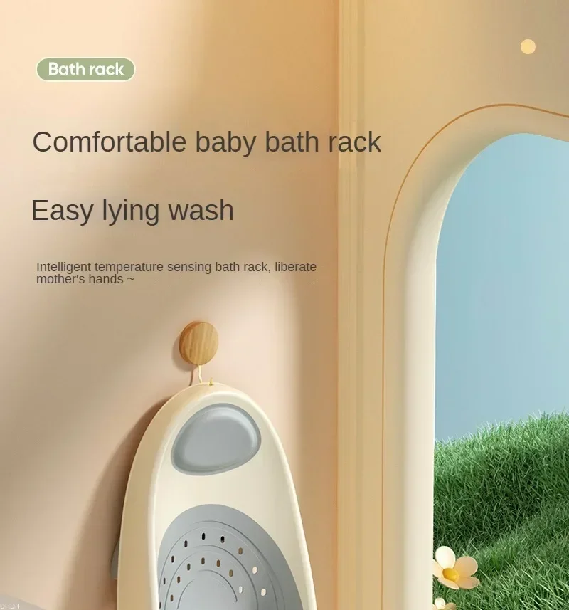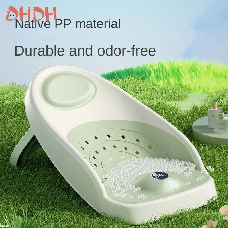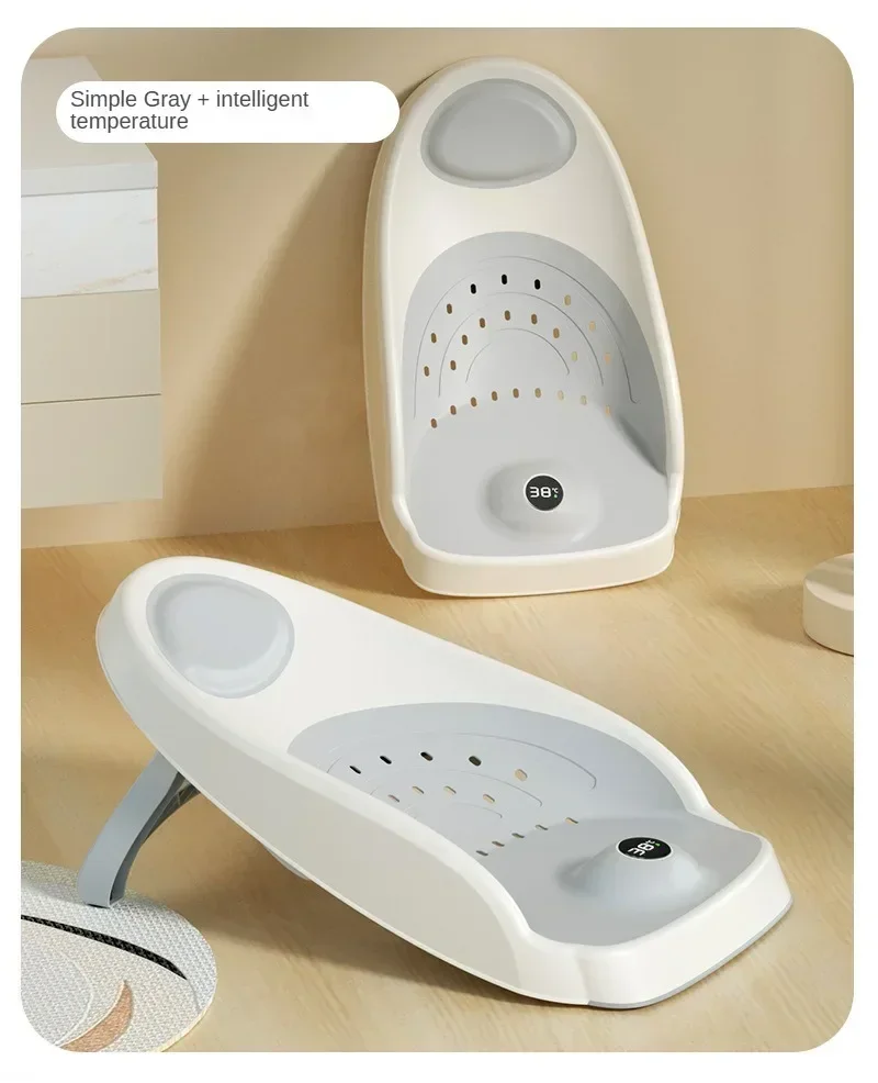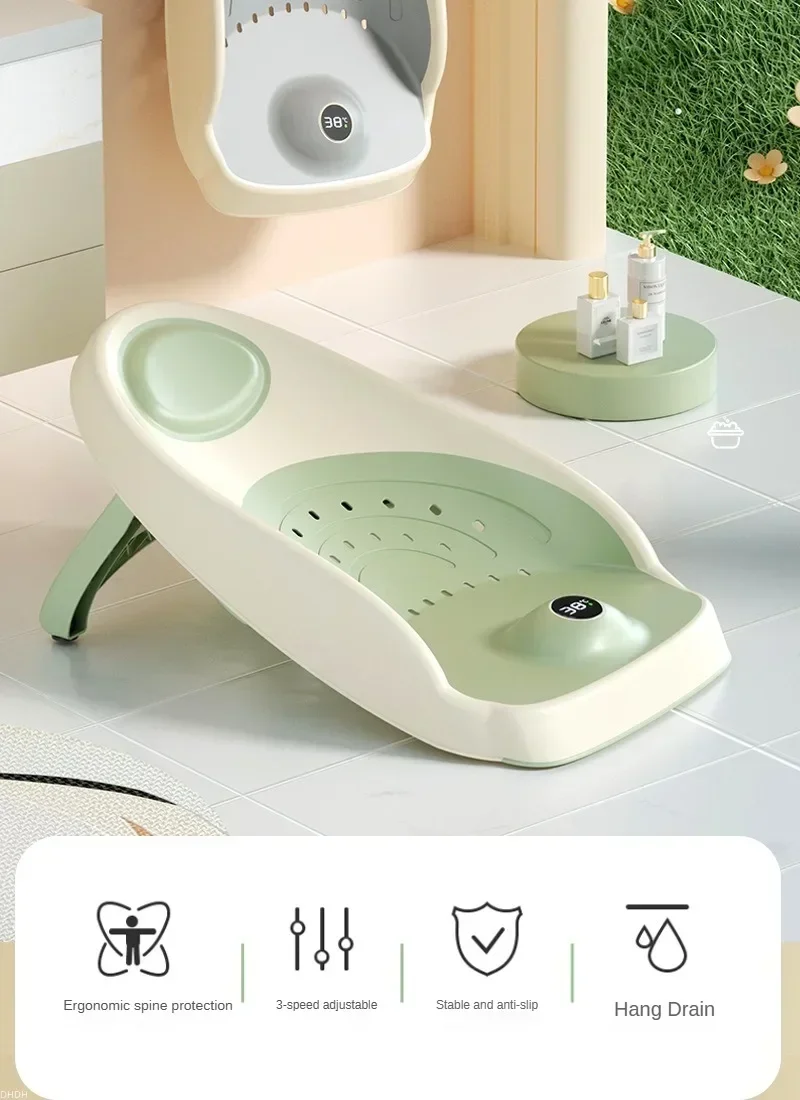 Temperature Display Baby Bath Tub – Non-Slip Foldable Infant Bathtub Real-Time Water Temp Sensor, Portable & Safe for Newborns