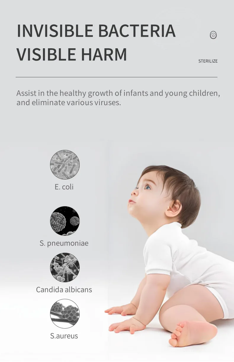 מחסל 99.9% מחיידקים* בדקות, מבטיח היגיינה תוך כדי שאיבה. מושלם לאמהות עסוקות הדוגלות בבטיחות.